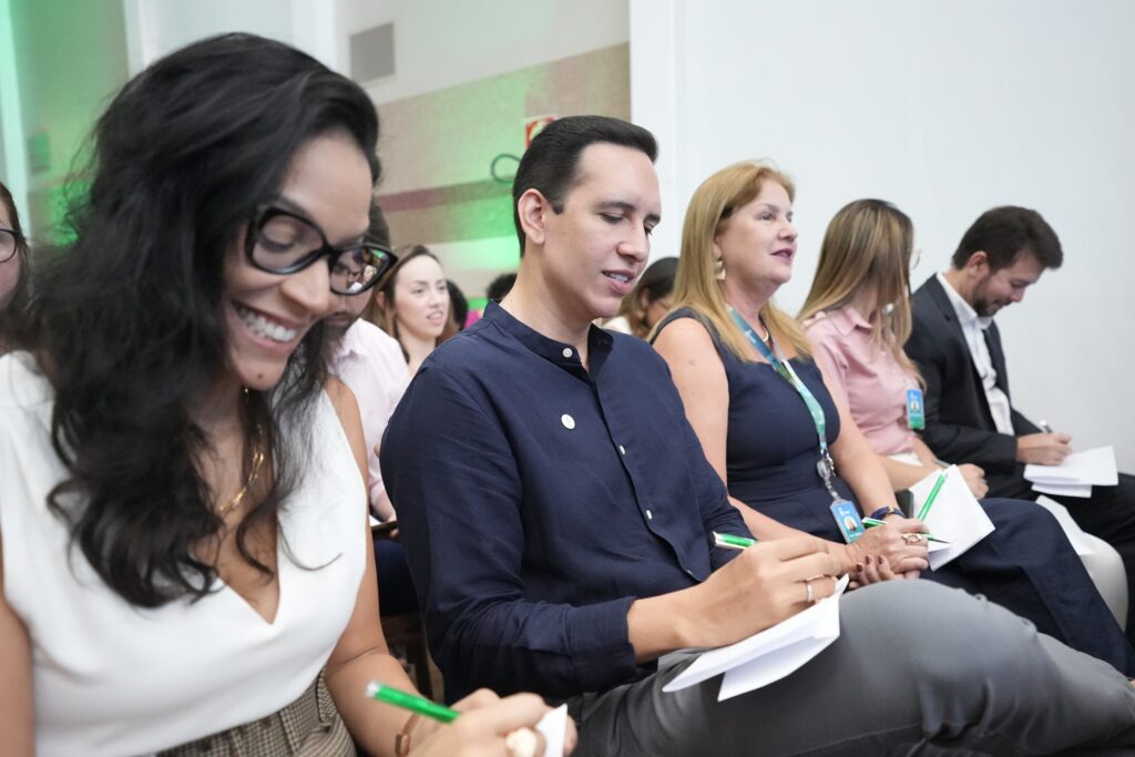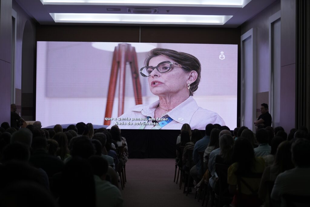 Os gestores Maria Silvia Figueira Vidon (Superintendente de Administração e Finanças), Adriana Scavuzzi (Superintendente de Atenção à Saúde), Eduardo Jorge (Superintendente de Ensino, Pesquisa e Inovação) e Manoel Figueira (Superintendente de Operações) explanaram os avanços alcançados em 2025 e os principais projetos do IMIP para o novo ano através de um vídeo institucional exibido para os presentes.