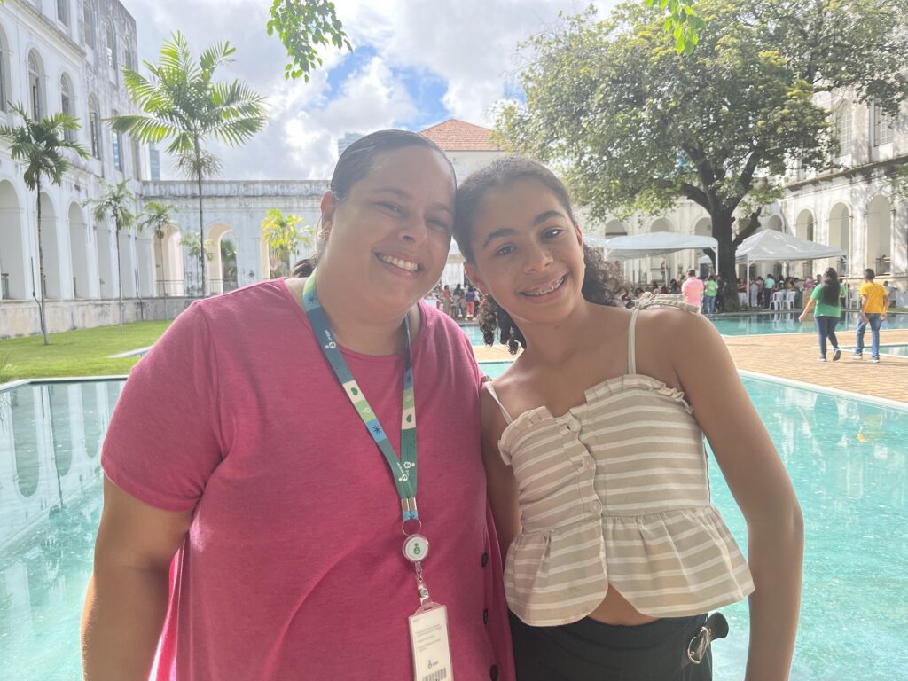 Colaboradora da Instituição há 18 anos, essa foi a primeira vez que Lucivania Almeida trouxe a filha, Maria Isabel, de 12 anos, para participar do evento. “Ela cresceu vindo ao hospital e trazer ela ao ‘IMIP da mamãe’ – como ela chamava quando era criança -, num momento tão legal de interação e brincadeiras, é ainda mais especial. Essas iniciativas motivam a gente e proporcionam um dia diferente, de respiro dentro do ambiente de trabalho”, destacou Lucivania, que atua na Diretoria de Extensão Comunitária.
