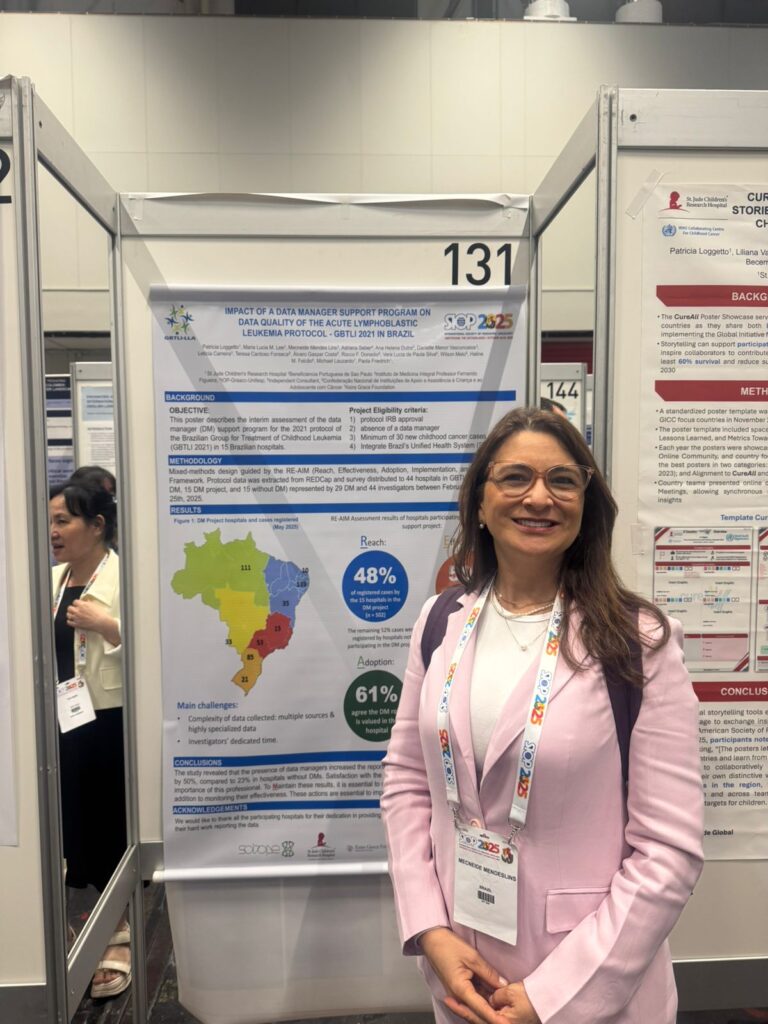Além da apresentação oral, pôsteres científicos foram apresentados pela Dra. Mecneide Mendes e pela Dra. Maria do Céu Diniz, médica oncopediatra do IMIP. A Dra. Maria do Céu também foi homenageada com o reconhecimento de Liderança Jovem na Oncologia Pediátrica, concedido pela SIOP a profissionais com menos de 40 anos que se destacam em sua área de atuação.