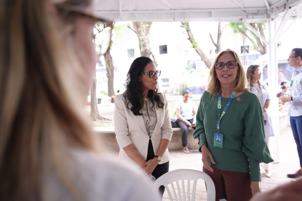 Prestigiaram a iniciativa a Presidente do IMIP, Silvia Rissin, a Superintendente-Geral, Tereza Campos, acompanhadas de Larissa Viana, Diretora Multiprofissional do IMIP e coordenadora da ação.