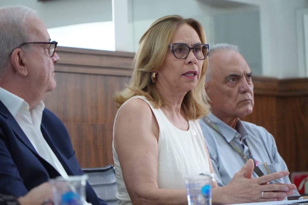 Prestigiaram a abertura a Superintendente-Geral do IMIP, Tereza Campos, ao lado de Eduardo Jorge, Superintendente de Ensino, Pesquisa e Inovação, Lívia Andrade, Diretora de Ensino do IMIP, José Roberto da Silva, Coordenador e Docente do Programa de Pós-graduação stricto sensu em Saúde Integral do IMIP, e Gilliatt Falbo, Coordenador Acadêmico da FPS.